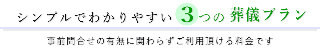| 葬儀の形式にあわせてお選び頂ける3つのベーシックプランです。興善寺会館の使用料金や、人数にあわせた料理と返礼品を含んだプランもご用意しております。詳しくは【モデルプラン一覧】をご確認ください。ご予定の人数設定が無ければ、お客様にあった詳細な見積書と資料を至急お送り致しますので、電話か資料請求フォームよりお問合せください。匿名でのご相談も可能です。※興善寺会館は火葬場ではないので、直葬プランは周辺火葬場にてご利用頂きます。 |